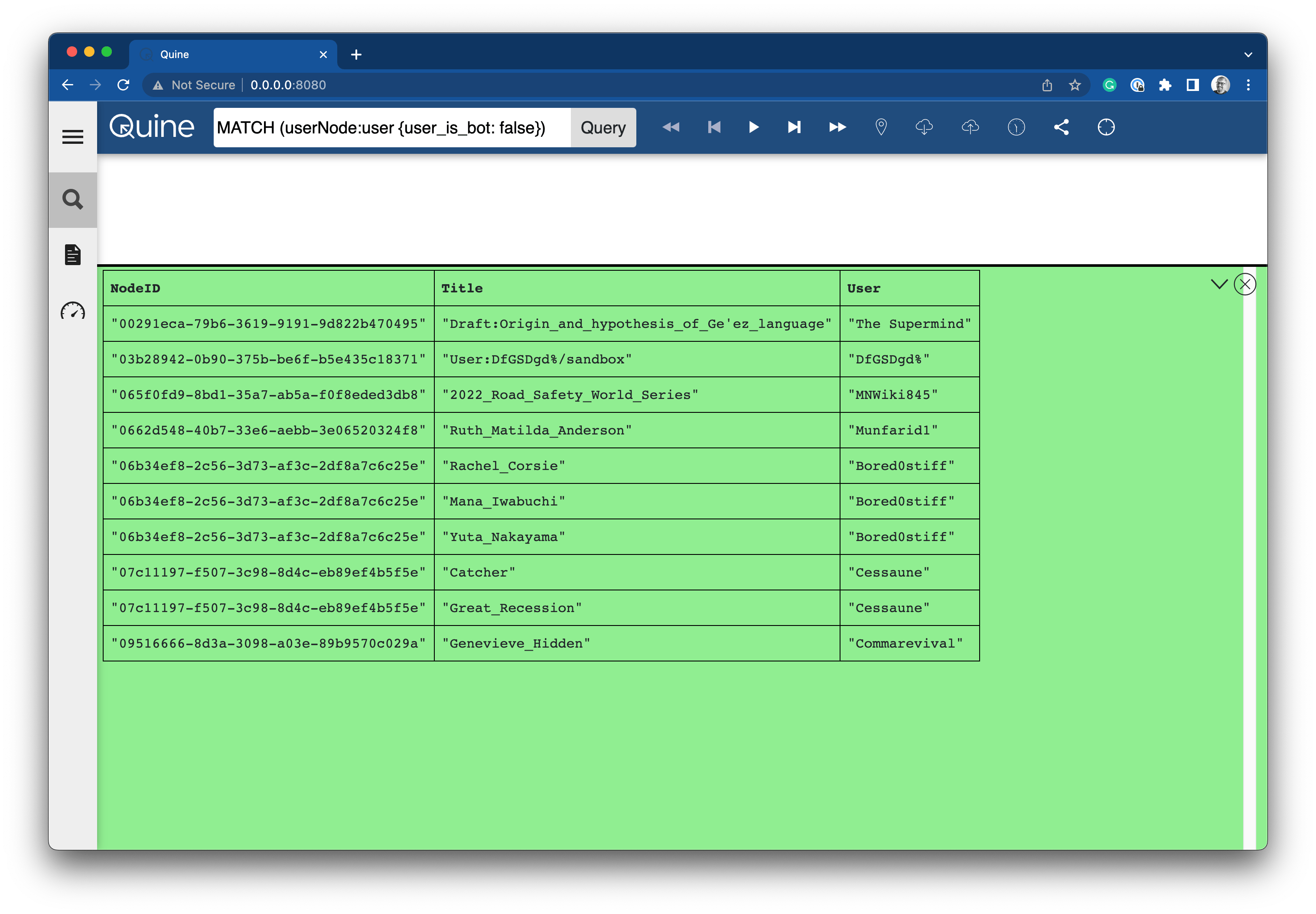 Up to this point, we've been using the REST API to interact with Quine. In the next section, we will collect all of the API calls that we've made and build a recipe.