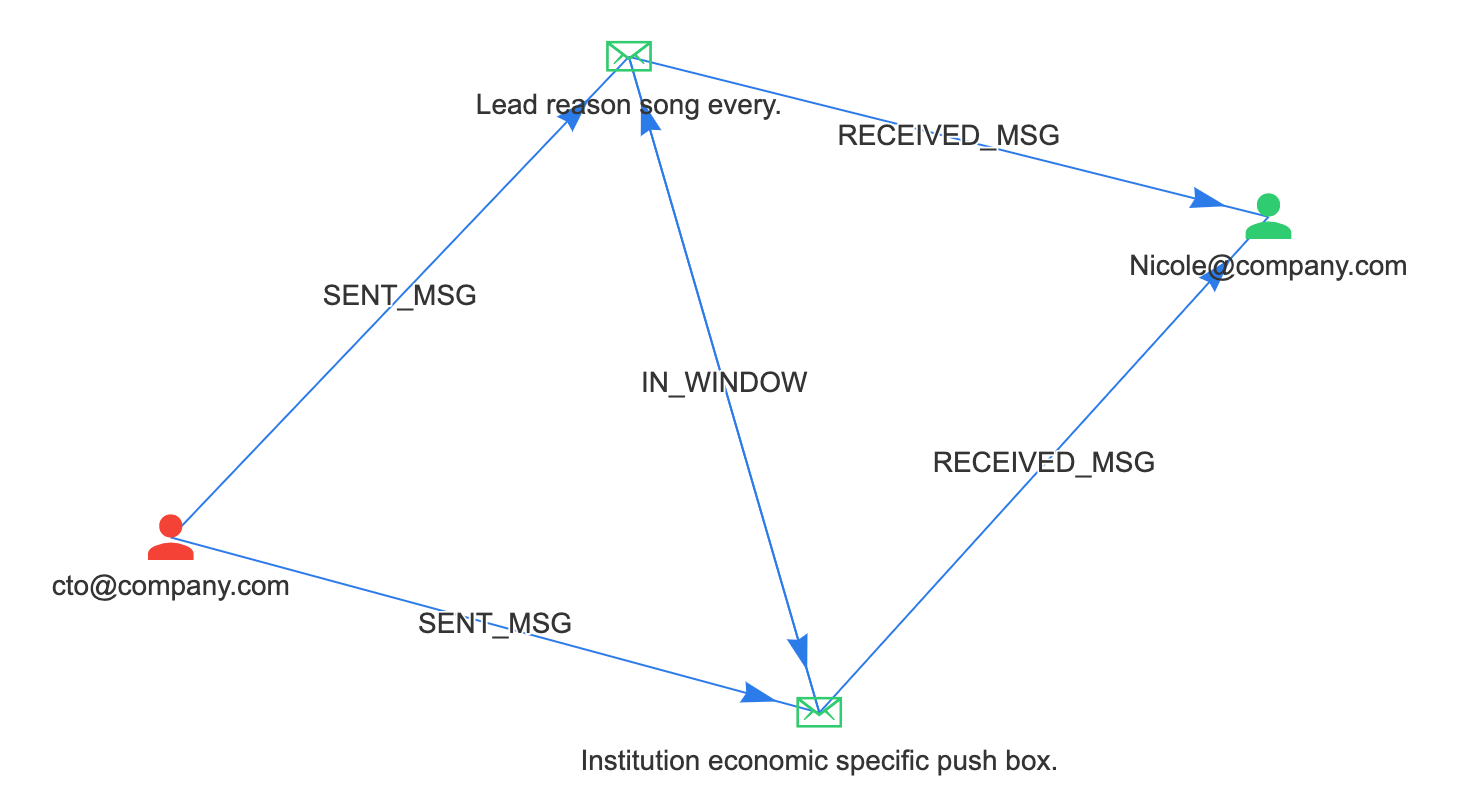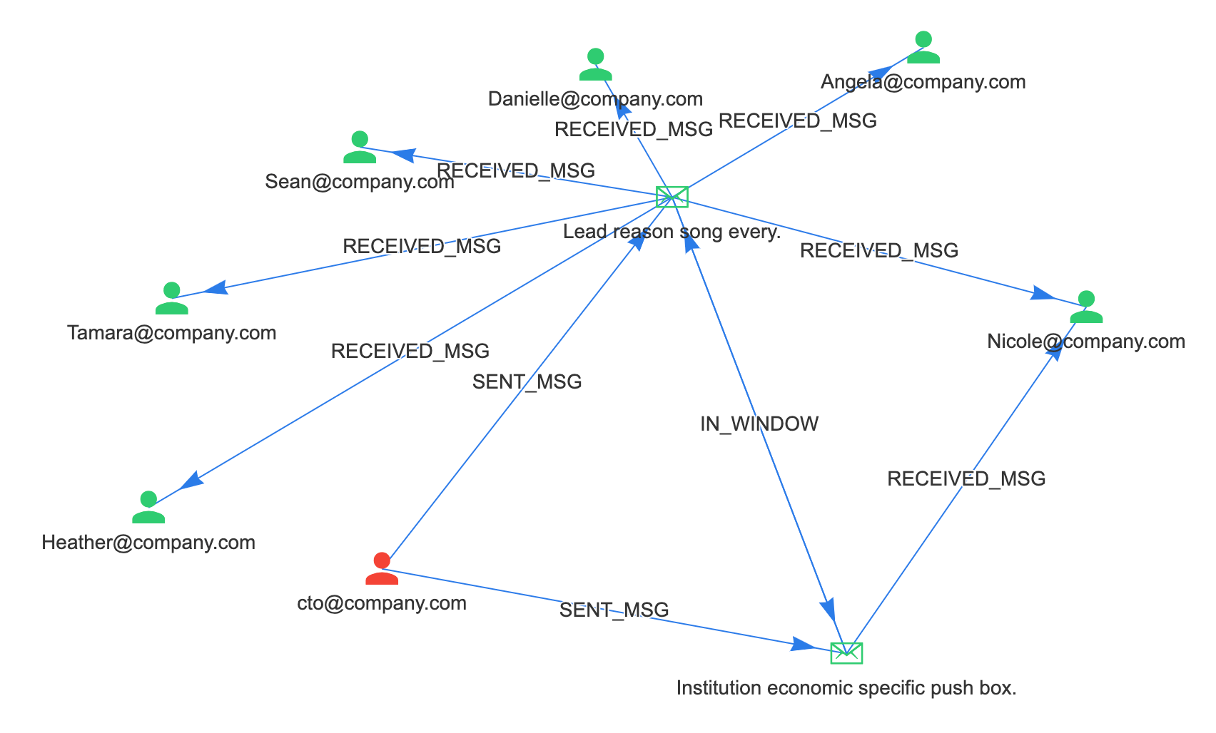 This recipe looks for emails sent or received by cto@company.com within a sliding window as a means of highlighting a technique for matching on temporal locality of nodes in standing queries.