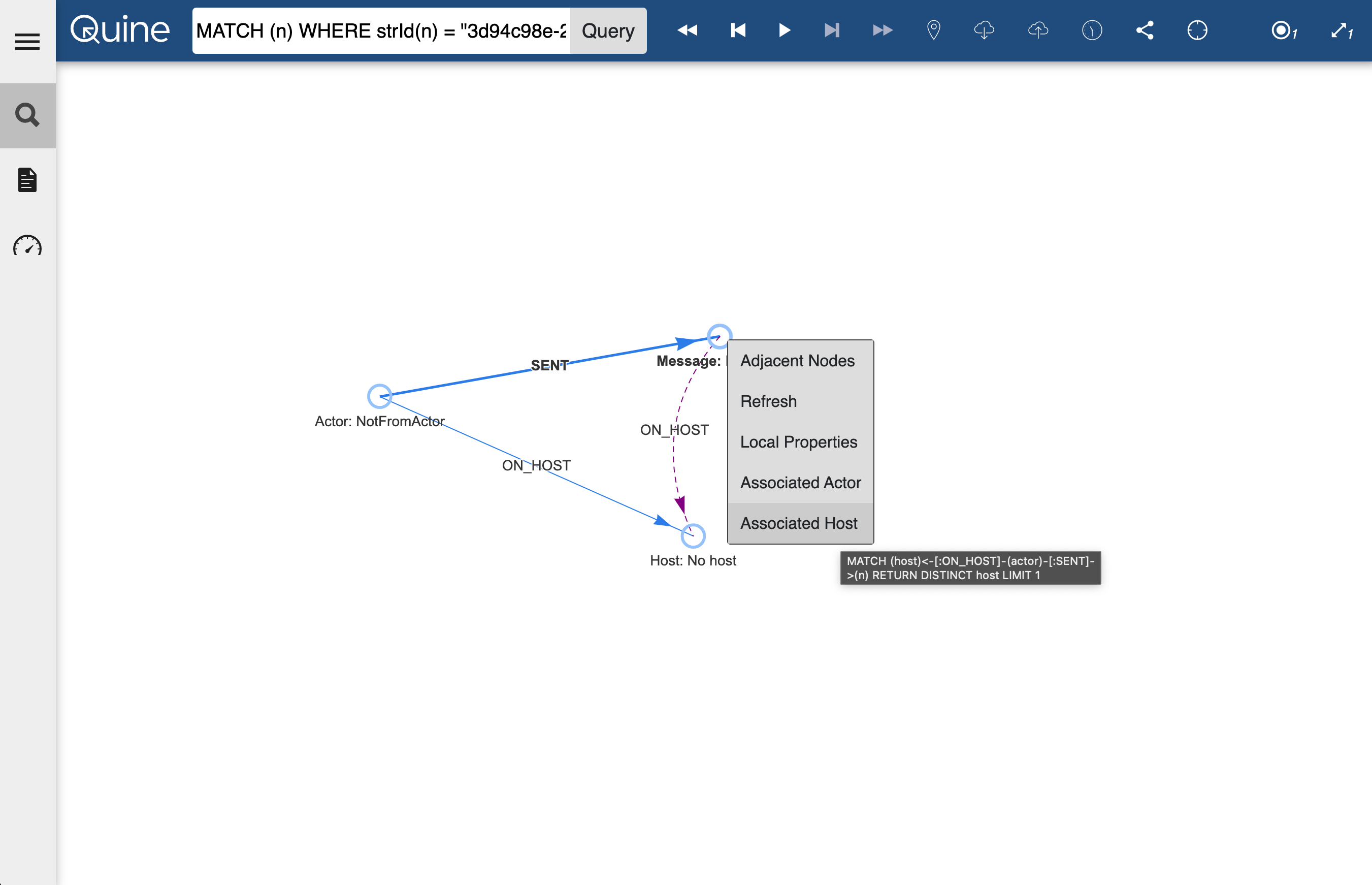 We've included a series of Quick Queries to help explore the graph. The are available by right clicking on a node displayed in the Exploration UI.